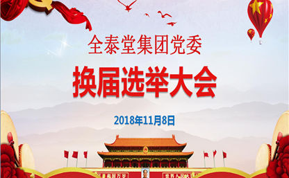 2018 年 11 月 8 日下午,全泰堂集团有限公司党委换届选举大会在公司八楼会议室顺利召开,集团全体共产党员共42 人参加了大会,遂宁市“两新”组织党建指导组组长杨远金、副组长文中心、成员唐晓亮、谭琼芳、罗惠平、田洪祥、市委老干部局综合科邓小润科长应邀出席了会议。会议由集团客服部党员翟小琴同志主持。